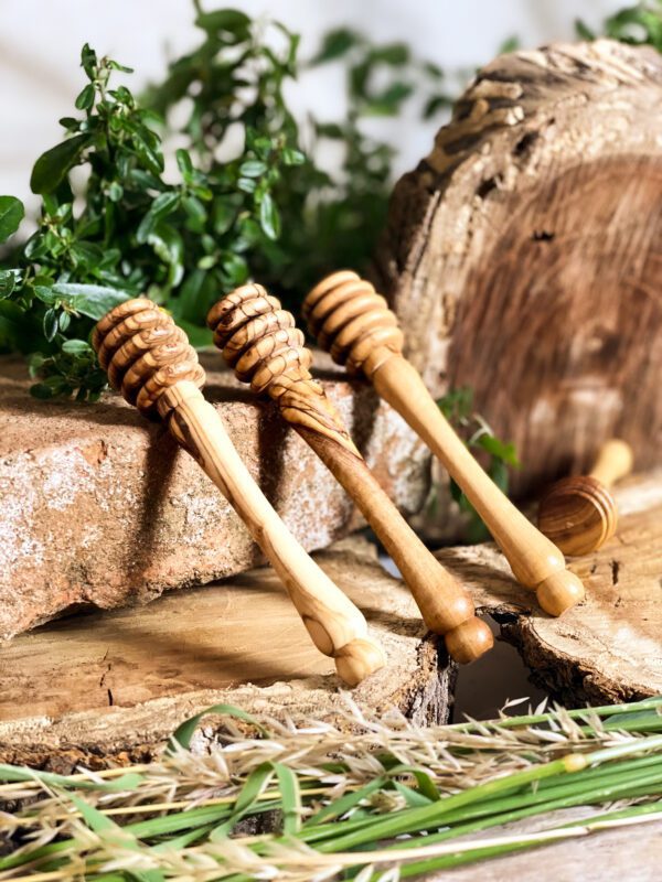 Il cucchiaio per il miele (honey stick) è prodotto a mano da artigiani di Betlemme, in Cisgiordania, e ogni pezzo è unico. Molte famiglie cristiane in Palestina lavorano il legno d’ulivo secondo una tradizione che prosegue ininterrotta dal XV secolo, nonostante l’avvicendarsi dei fatti storici e l’attuale occupazione. Beit Sahour, luogo di origine degli artigiani che collaborano con noi, è stata riconosciuta città mondiale dell’artigianato per il 2020 dal World Craft Council (organizzazione affiliata all’UNESCO).